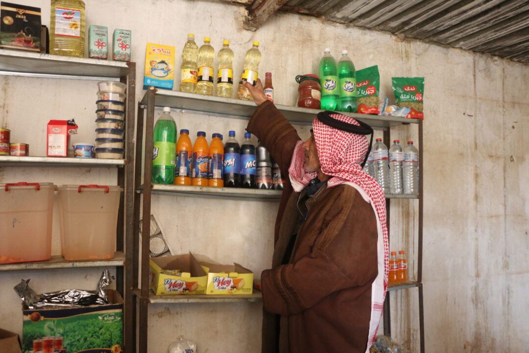 Mohammad purchasing basic food items after receiving Multi-Purpose Cash assistance in Al-Hawija Camp, Idlib governorate.
