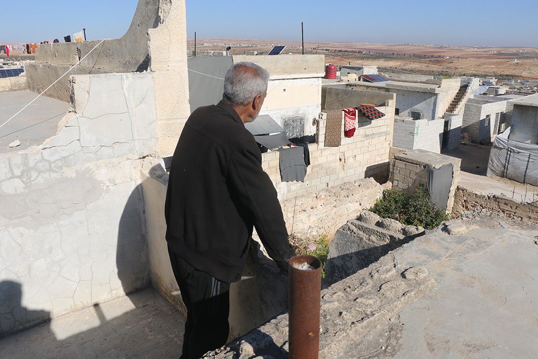 Abu Hussien, overlooks Heish town from the roof of his home, reflecting on returning to his community after years of displacement and conflict