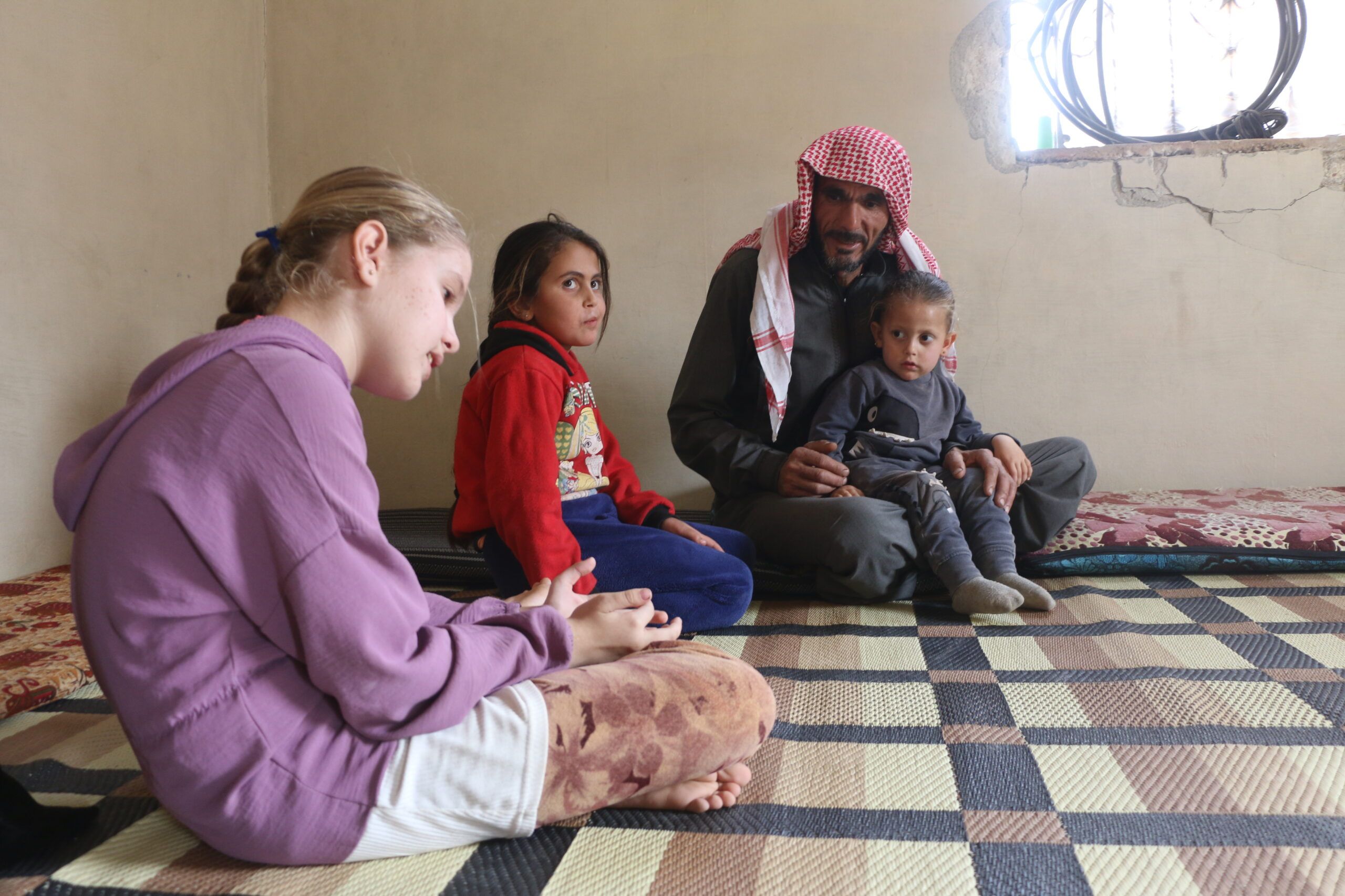 Ali spends time with his daughter Seham, 14, and his granddaughters at their home in Baboulin village, Idlib governorate, where the family is working to rebuild their lives after returning.